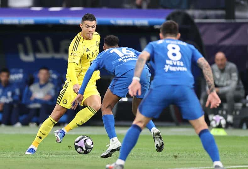 انطلقت المباراة بإيقاع سريع وهجومي من الطرفين، وسط سيطرة نسبية للهلال على الكرة. ورغم ذلك، نجح النصر في افتتاح التسجيل قبل نهاية الشوط الأول بدقائق قليلة، عندما أنهى كريستيانو رونالدو ببراعة هجمة جماعية منظمة في الدقيقة 43، معلناً تقدم فريقه 0-1.